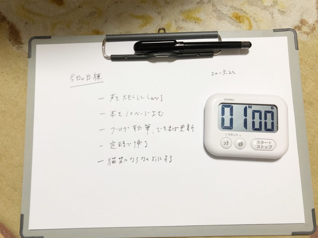 このゴールデンタイムにその日の目標、やること、その他