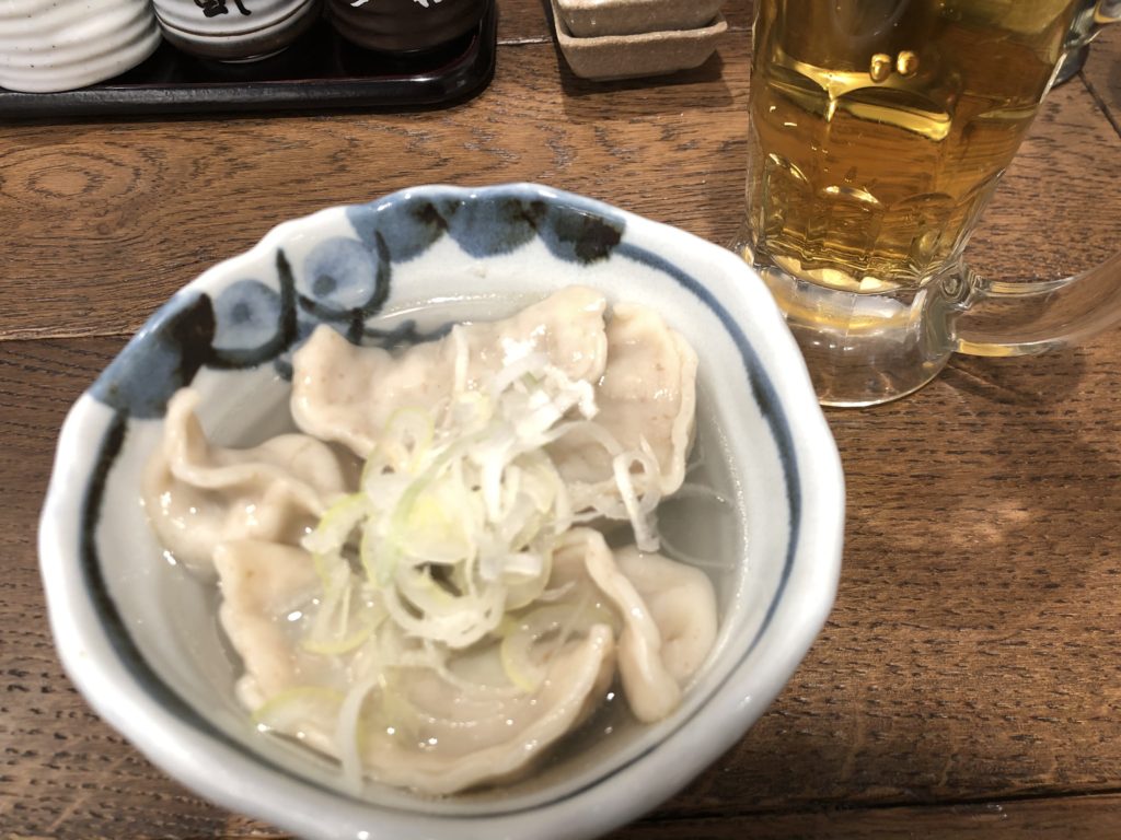 焼き餃子と水餃子、それとビールを注文。